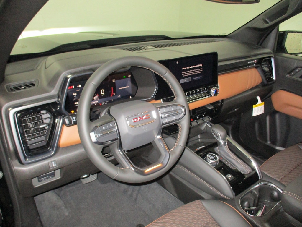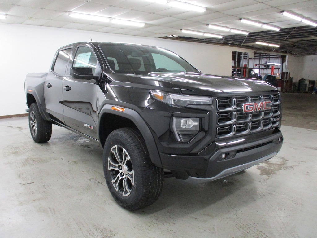 The 2025 GMC Canyon 4WD AT4 is the rugged midsize truck engineered for off-road adventure without sacrificing daily comfort. It's powered by a potent high-output 2.7L Turbo engine generating 310 horsepower and 430 lb-ft of torque. The AT4 trim enhances capability with an advanced 4WD system, a 2-speed Autotrac transfer case, and an off-road performance display. Key exterior features include a factory lift, unique dark gray grille, and 17-inch wheels wrapped in all-terrain tires, ready to tackle any trail with confidence and style.