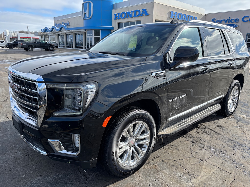 Welcome to Battle Creek Honda!! You can contact us at (269)965-2205. This 2023 GMC Yukon SLT 4wd comes equipped with Automatic Transmission, Dual Zone Auto Climate Control, Cruise Control, Tilt Wheel, Power Windows, Power Locks, Power Mirrors, Power Drivers Seat with Memory, Leather Interior, BOSE AM/FM/XM Radio, Wireless Charging Pad, Power Tailgate, Keyless Entry with Remote Start, Heated Seats, Alloy Wheels, All Wheel Drive and Much More!! Don't Delay Call Battle Creek Honda Today For Details!