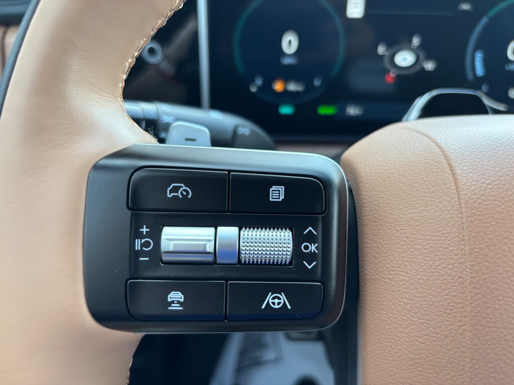 I’ve had my 2025 Santa Fe Hybrid Limited since December and I’m coming up on 12,000 miles. It does a lot right. It looks good, drives well, and hauls everything I need. But there are a few odd choices and oversold features that hold it back from being great. The new boxy design stands out. Rockwood Green turns heads, and the cabin feels clean and upscale. The infotainment system is excellent, responsive, well laid out, and easy to use. The digital driver display, on the other hand, is limited. You can’t get a map view or much customization, which feels like a missed opportunity. I wasn’t expecting a luxury SUV for 43 grand, but this part could have been better with minimal effort. I originally wanted the black wheels and exterior styling of the Calligraphy trim, but it forced me into either black or white interior and second-row captain’s chairs. That didn’t work for me. With two idiot mastiffs and a kid to haul around, I needed the bench seat and a tan interior. The Limited was the only way to get a practical setup that fit my life, even if I had to give up some of the higher-end styling. Ride quality is firm but controlled. The hybrid powertrain handles highway driving and passing without struggle, even with the vehicle fully loaded. Visibility is great, and the cargo space is fantastic. The seats fold totally flat, and I’ve had no issue packing in dogs, golf clubs, and everything else. The third row is tight, but it works for short trips or smaller passengers. The stock audio system is weak. I had to add a sub to get anything approaching decent bass, which is disappointing for something with “Bose” audio. The biggest frustration is the cruise control. It will not function properly if you are wearing sunglasses in Colorado sun. It throws warnings and disables itself until you take them off. That makes it useless in exactly the conditions where I wanted it most. Fuel economy has also been underwhelming. It was advertised at 34 to 35 miles per gallon, but I have never hit 30. I average around 25 to 28 per tank. It is better than a traditional gas SUV, but it is nowhere near what Hyundai claimed. There is no spare tire. You get a flat repair kit, which is better than nothing, but not ideal in a family SUV designed for road trips. In the end, I still like it. For the price, I got what I expected, and in a market where everything is overpriced, I am not unhappy. But the cruise control issue, weak audio, limited screen customization, and inflated mileage figures keep it from being a five-star vehicle.