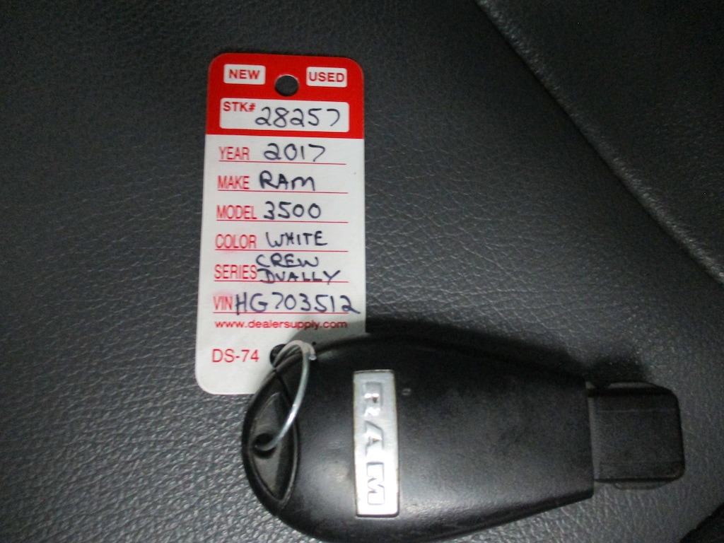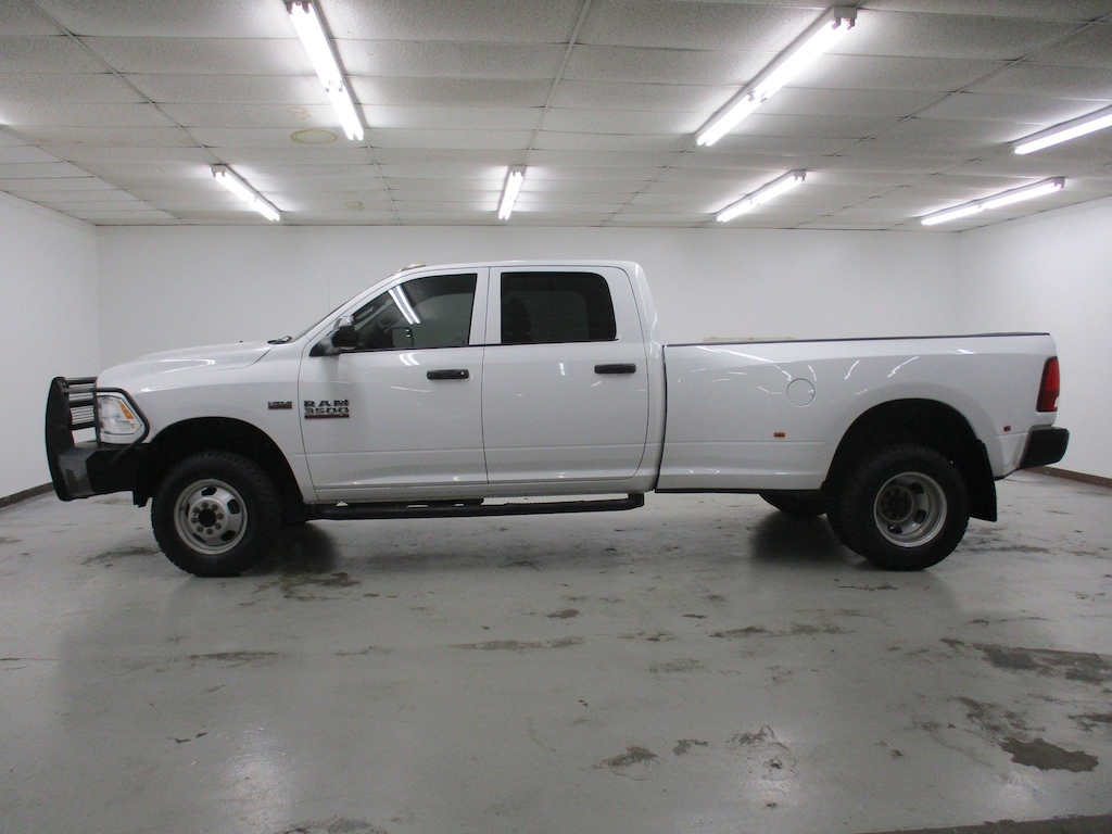 The 2017 Ram 3500 Tradesman is a no-nonsense, heavy-duty work truck built for power and durability. It comes standard with a potent 5.7L V8 HEMI engine producing 383 hp and 400 lb-ft of torque. The function-first cabin features durable vinyl seating, easy-to-clean vinyl flooring, and practical amenities like standard air conditioning and a basic Uconnect system with Bluetooth connectivity.